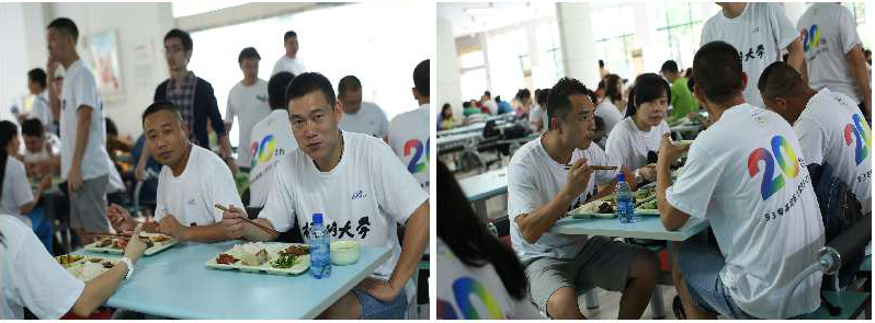 7月11日上午,同学会全体校友来到西溪校区重温大学校园,中午在食堂就餐,重新体验学生时代的“快餐”,回忆在校时的点点滴滴。下午,校友们来到学校体育馆开展了班级篮球友谊赛,突破、妙传、三分,比赛紧张而精彩,男同学们豪情不减当年,女同学们则继续为当年的场上偶像鼓掌和喝彩。篮球把大家更紧密地联系在一起,多少精彩瞬间成为生命永远值得怀念的时刻!