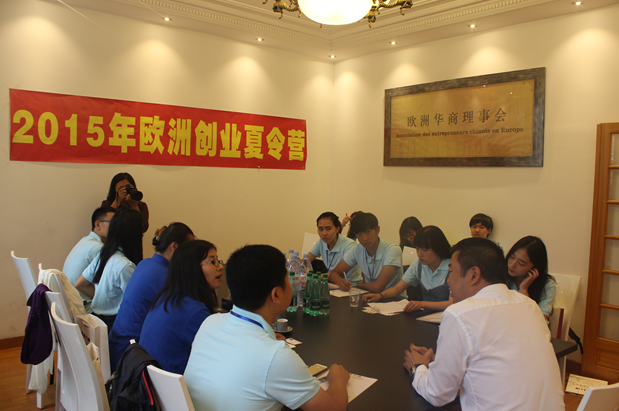 8月14日上午,夏令营师生在欧洲华商理事会参加研讨