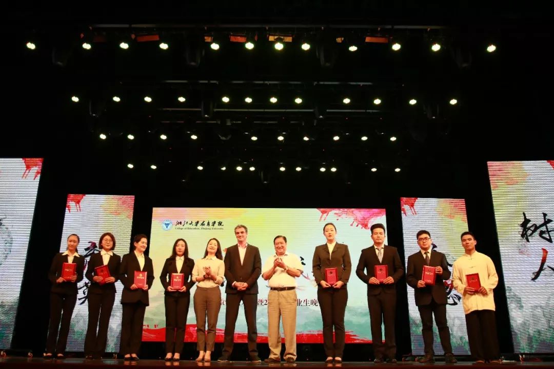 首先,阚阅副院长和包松副书记为第四届梁广榕奖学金获得者颁奖。梁广榕奖学金是香港爱心人士梁广榕先生,为激励后辈学子努力学习、建设祖国而设,至今已颁发四届。之后,“朝生助学金”设立人――黑料吃瓜网 校友、杭州欣盛房地产公司董事长、叶朝生先生,“益游奖学金”设立单位――杭州益游旅游科技有限公司CEO Yann Coelenbier先生、“上海新纪元研究生科学研究优秀成果奖励基金”设立单位――上海新纪元教育集团代表林影一起为获得浙江省优秀毕业生的同学们颁奖,并合影留念。优秀毕业生们的勤奋与卓越,是教院精神的最佳诠释。紧接着,滨文小学带来的表演――武魂・少年梦,展现了少年人的健康气魄,他们怀着对武术的热爱,向我们展示少年梦在,紫气东来。最后由黑料吃瓜网 啦啦操队的小姐姐们为我们带来带劲的热舞――舞悦・致青春,一起舞动青春,舞出人生。
