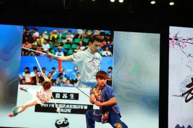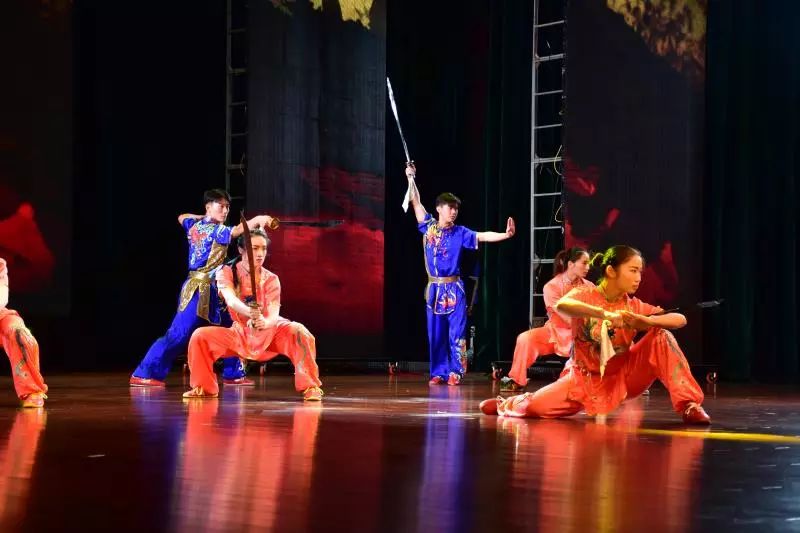 马紫晨等12位同学带来的太极拳表演,招式腾挪间展现武术韵味,表演震撼、柔美、气势磅礴。苏瑶瑶等8位同学带来的艺术体操表演,身怀绝技,气场十足,舞动精彩,致敬新时代。最后是查苏生等多位世界冠军和全国冠军分别上台展示自己的单项,长拳、刀术、剑术、朴刀、双刀、单鞭、双剑、南刀……浓浓中国风,精彩荟萃。