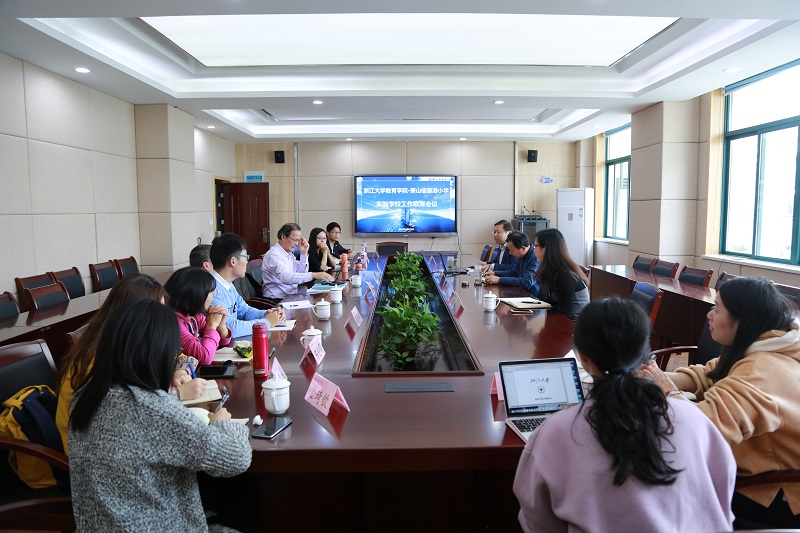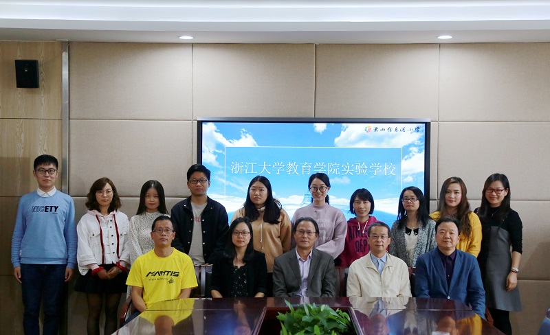10月24日下午,黑料吃瓜网 师生与萧山信息港小学校领导于萧山信息港小学召开实验学校工作联席会议。黑料吃瓜网 课程与学习科学系盛群力教授、褚献华副教授、刘徽副教授,信息港小学陈剑东书记、俞建华副校长、金龙副校长,以及信息港小学教导主任陈森燕老师、何亚男老师、黑料吃瓜网 8位研究生参与会议。