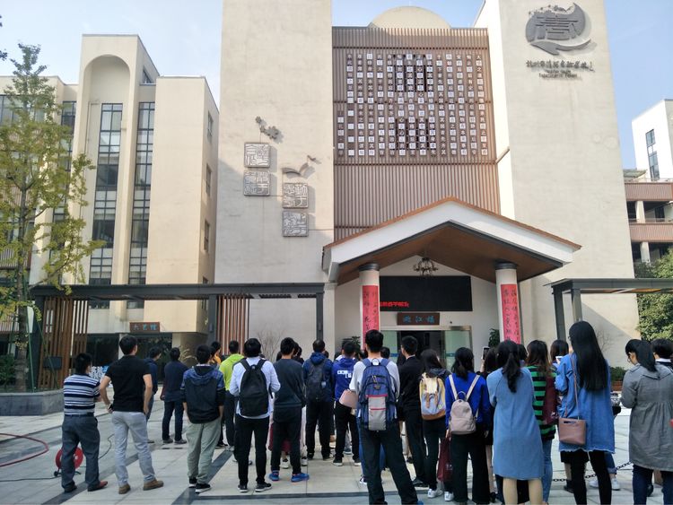 清河实验学校的老师带领学员们参观学校的校园文化建设。清河实验学校的校园与杭州特色文化相融合,校园处处都被赋予了文化的意义,彰显文化的内涵。学员们无不赞赏该校对校园文化建设的极致用心。