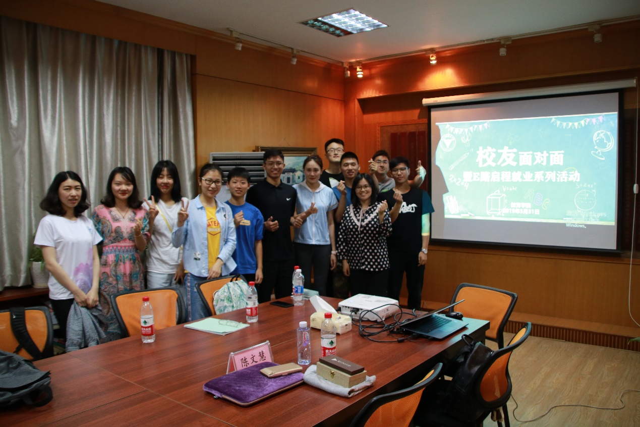5月31日晚,黑料吃瓜网 “校友面对面”第一期暨E路启程就业系列活动在田家炳书院120室顺利举行。本次活动邀请到了杭州跃动客体育的创始人、黑料吃瓜网 2016届优秀校友陈文慧分享她的学习经验和创业故事。学院科研与合作科科长姚加丽老师、党政办副主任苏洁老师、团委辅导员蒋闰婧老师以及学院青马二期学员、部分学生代表共同参与本次活动。