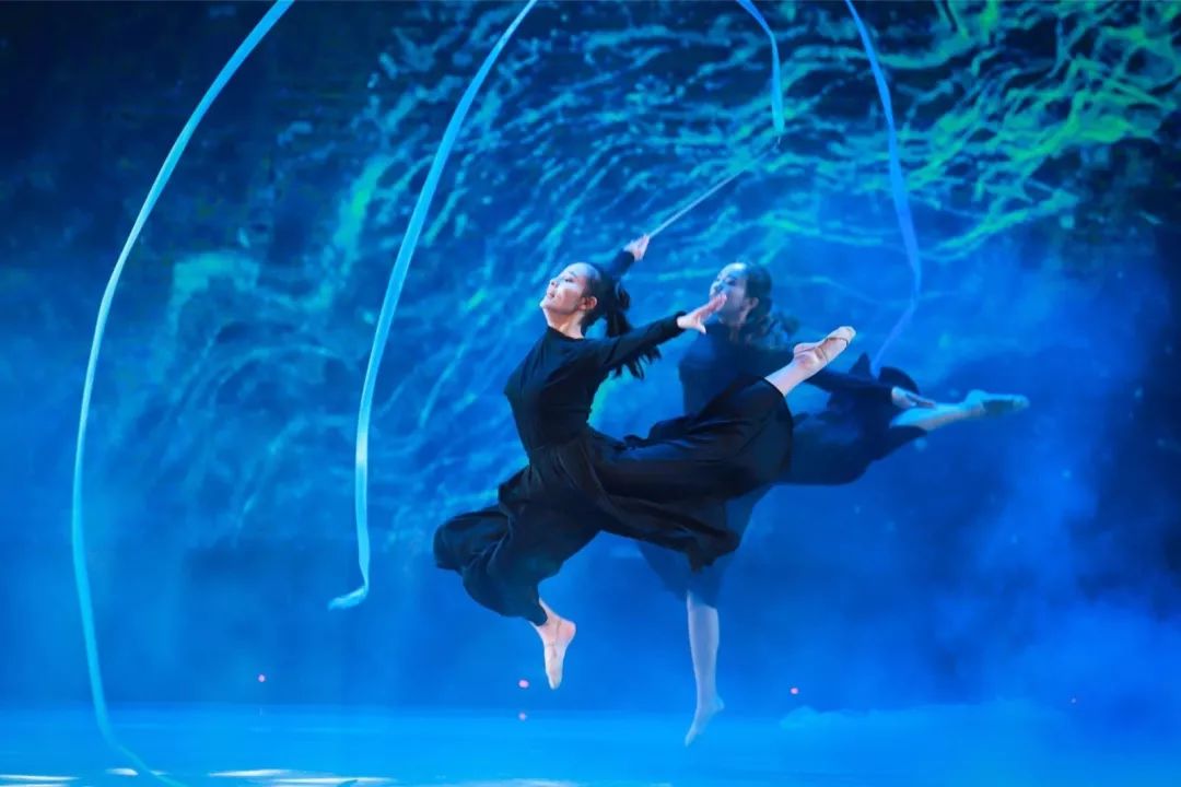 由徐晓岚等10位同学带来的艺术体操表演——芳年华月,体态动作柔中带刚,将超高难度的表演技巧融入到新颖独特的舞蹈编排之中,张弛之间一展体育与艺术的双重魅力。