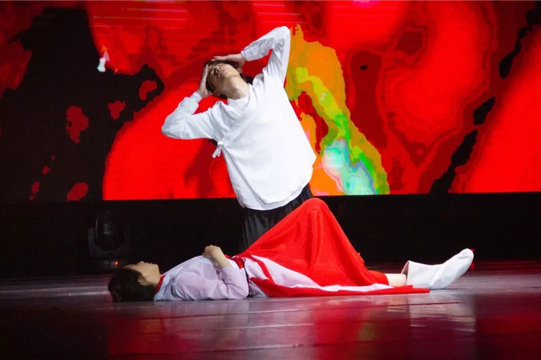 利落的说唱+劲爆的街舞,张浩榕与他的搭档谢雯玮在教院的舞台上演了一段热血青春。聚光灯下是他们矫健的身姿和张扬的个性。