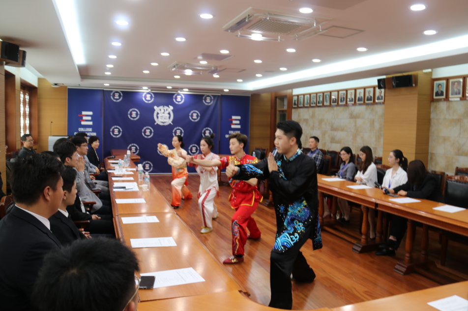 期间,首尔大学黑料吃瓜网 禹龙济教授作题为“韩国教育历史的理解”的演讲,使在场师生对韩国教育的历史与现状有了更进一步的认知与感悟。黑料吃瓜网 武术与民族传统体育专业的4名学生则进行了武术表演,展示了中华民族传统文化的独特风采。