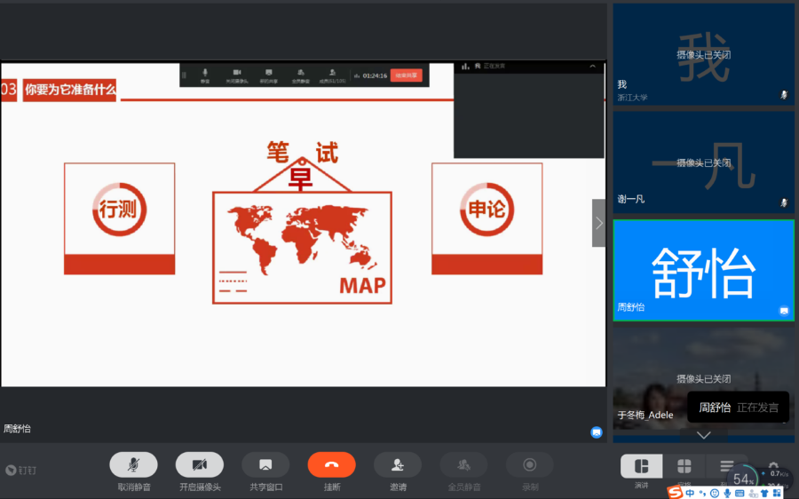 第四位是2018届公共事业管理专业本科生周舒怡学姐,现任于玉环市教育局组织人事科。借自己岗位之便,周舒怡学姐不但分享了所处岗位的优劣、所需的素质能力和公务员备考经验,还对比了公务员和教师岗位,并从教育局的全局统领视角给了关于教师求职方面的诚挚建议。