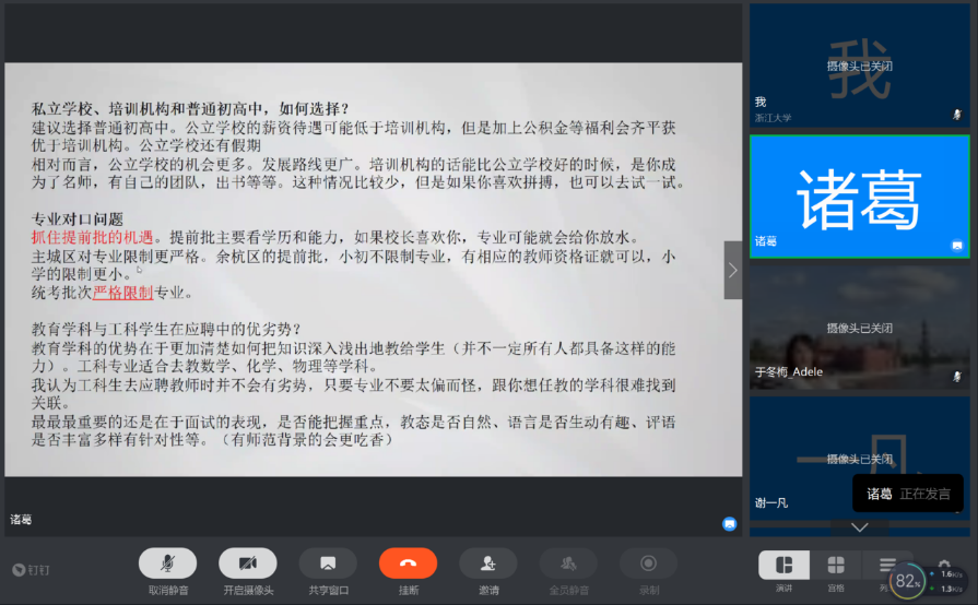 此外,本次活动提前收集了同学们对各教育单位招聘入职方面的疑惑,非常感谢学姐们能根据自身经验、结合学生提问,在分享过程中毫不吝惜地为大家解疑答惑。