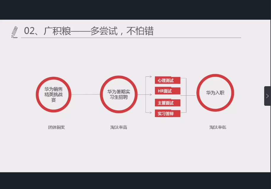 第三位是2019届高等教育学专业硕士生张学良学长。结合offer收获满满并最终选择华为技术有限公司培训经理一职的经历,学长着重讲述了入职准备与面试方面的经验,鼓励大家提高自我能力边界、多尝试且不怕错、三思而后定。