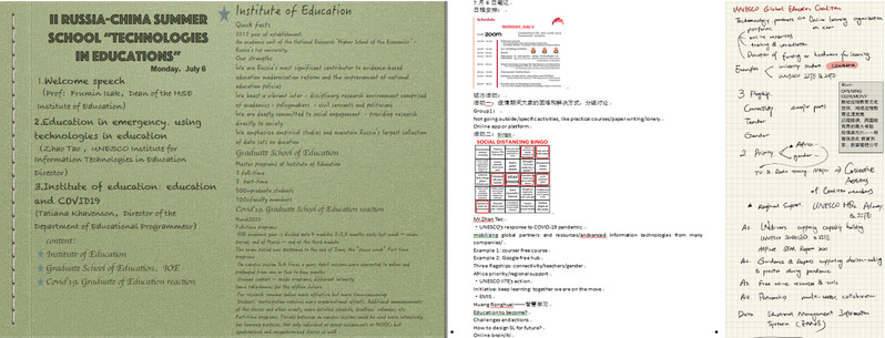 7月6日至7月10日,中俄两国学生约50人通过在线网络平台在云端相聚,围绕“全球疫情挑战下科技赋能教育的探索与实践”这一主题开展学习研讨。期间,中俄两国的教育专家学者围绕中俄教育技术合作与展望、俄罗斯教育历史与文化、数字化背景下的教师教育工作转型等主题开展了在线授课和讲座,暑期学校还包含小组主题讨论、互联网公司合作课程以及“云”游莫斯科等交流与文化项目。