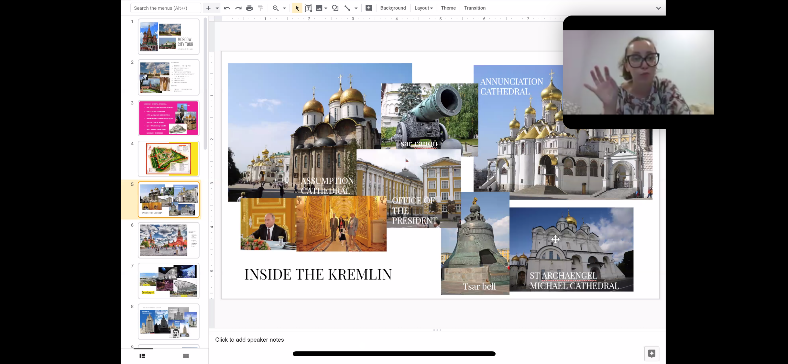 暑期学校的同学通过“云”游莫斯科,体会到了不一样的风情。在当地老师的带领下,通过视频直播等方式,同学们游览了莫斯科的美景。从俄罗斯国立图书馆、莫斯科红场、克里姆林宫,再到艺术殿堂般风格迥异的莫斯科地铁系统,同学们更加深刻地感受到了俄罗斯民族深处被艺术浸染的灵魂。正如教育学本科生鲍澄缘同学所说:“虽然为没能实地参观而感到遗憾,但技术的发展让我们能通过云直播的方式窥见这个美丽国家的一角,这样的线上旅游也不失为一次新奇的体验”。