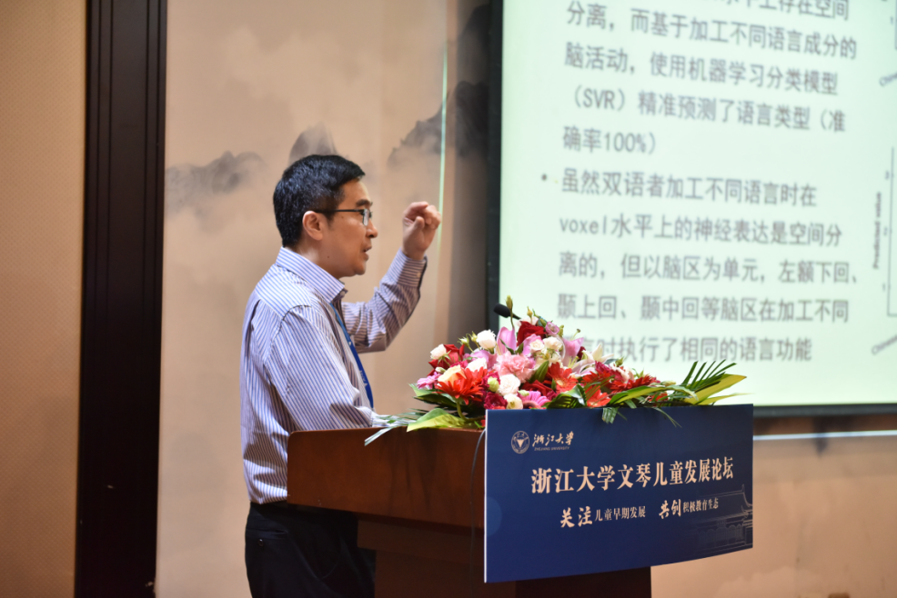 深圳大学特聘教授、深圳市神经科学研究院院长谭力海带来了题为《大脑发育与儿童语言和阅读能力发展》的主旨报告,分享了其研究团队使用磁共振,ERP等技术开展的一系列儿童及成人语言发展研究。谭教授号召我国构建自己的语言、心理、认知和教育理论体系,并总结提出了早期语言发展和大脑发育的关系、二语习得与大脑发育的关系和阅读障碍早期预警指标的文化特异性这三个未解之谜。