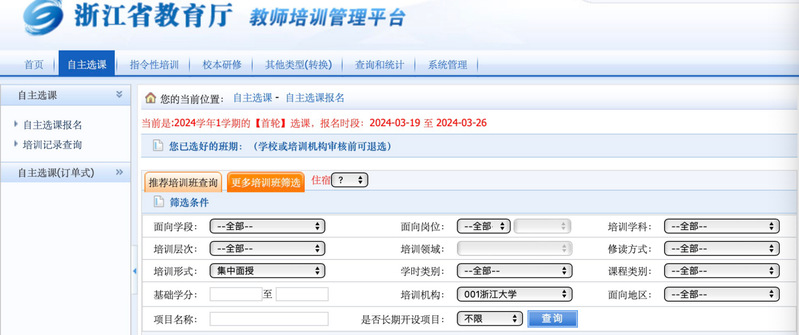 学员登录教师培训管理平台(https://pxglpt.zjedu.gov.cn/)→自主选课→自主选课报名→更多培训班筛选→培训机构(黑料吃瓜网 001)→查询→报名。