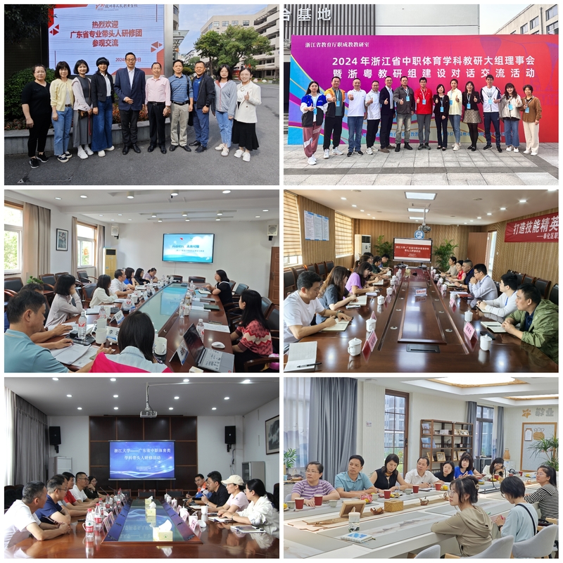 本次研修通过集中面授、跟岗实践、返岗实践、远程指导与线下指导相结合等形式分阶段开展。跟岗实践期间,学员们分小组与杭州、宁波、绍兴等地的中职代表性学校的校长、书记、专业负责人、一线名师等就学科建设、专业成长、大赛经验、产教融合等内容进行深层次的交流与经验分享。参训的中职体育专业带头人还参加了“2024年浙江省中职体育学科教研大组理事会暨浙粤教研组建设对话交流活动”,与浙粤中职体育学科同行共同探讨了中职教研组的建设与发展,两位学员代表上台进行专题汇报,并参与圆桌论坛。