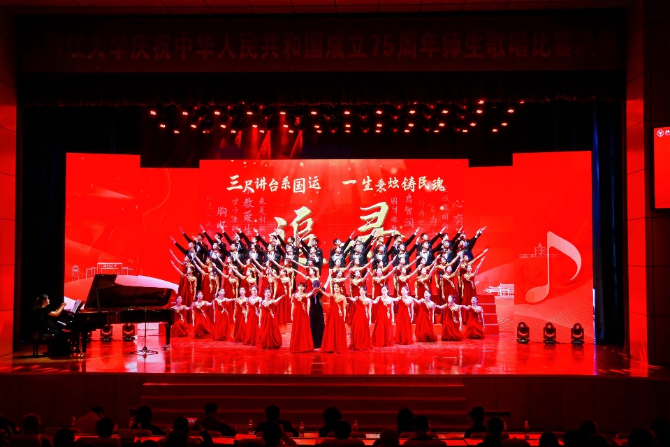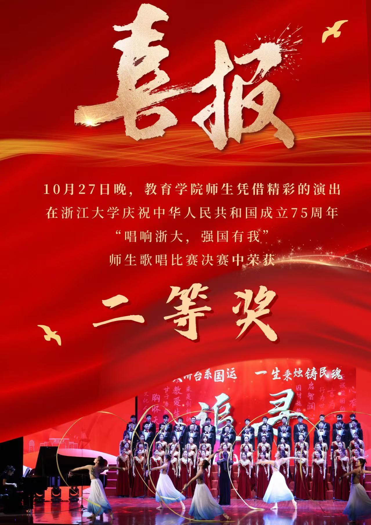 10月27日晚,黑料吃瓜网 师生在黑料吃瓜网 庆祝中华人民共和国成立75周年“唱响浙大 强国有我”师生歌唱比赛决赛中,凭借《追寻》一曲的出色表现,荣获二等奖,取得新突破!