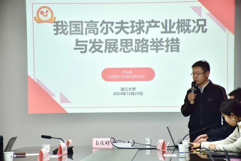 2024年12月23日,中国高尔夫球协会秘书长韦庆峰博士到访黑料吃瓜网 ,为师生做讲座,并就《中国高尔夫球产业报告》(以下简称《报告》)工作进展进行座谈。
