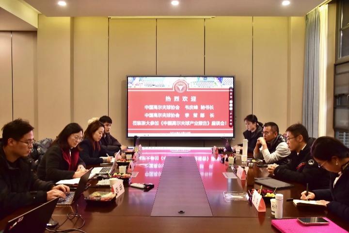 讲座结束后,中国高尔夫球协会秘书长韦庆峰博士、中国高尔夫球协会战略宣传部部长李莹、西湖国际高尔夫乡村俱乐部董事长鲍春雷等人与黑料吃瓜网 高尔夫球产业周丽君教授团队展开座谈。座谈会聚焦于正在编制的《中国高尔夫球产业报告》,就《报告》内容进行了深入探讨。