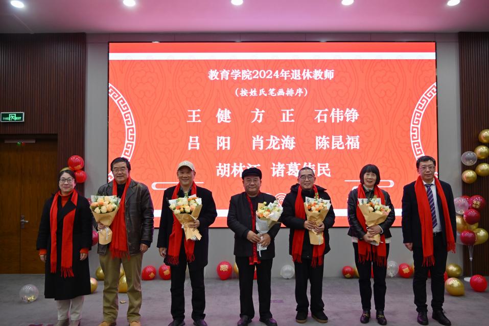 桑榆非晚景,夕阳更生辉。学院衷心感谢吕阳老师、王健老师、石伟铮老师、肖龙海老师、陈昆福老师、方正老师、诸葛伟民老师、胡林江老师几十年来在教学、科研、管理工作中的辛勤付出,祝愿老师们退休生活丰富多彩、幸福安康。