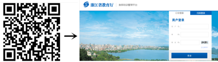 步骤1:电脑网页登录浙江省教育厅教师培训管理平台://pxglpt.zjedu.gov.cn或移动端打开微信,扫码或搜索【浙江教育管理公共服务平台】-点击【应用中心】-选择【师训平台】-输入师训平台用户名、密码和验证码-点击【登录】。