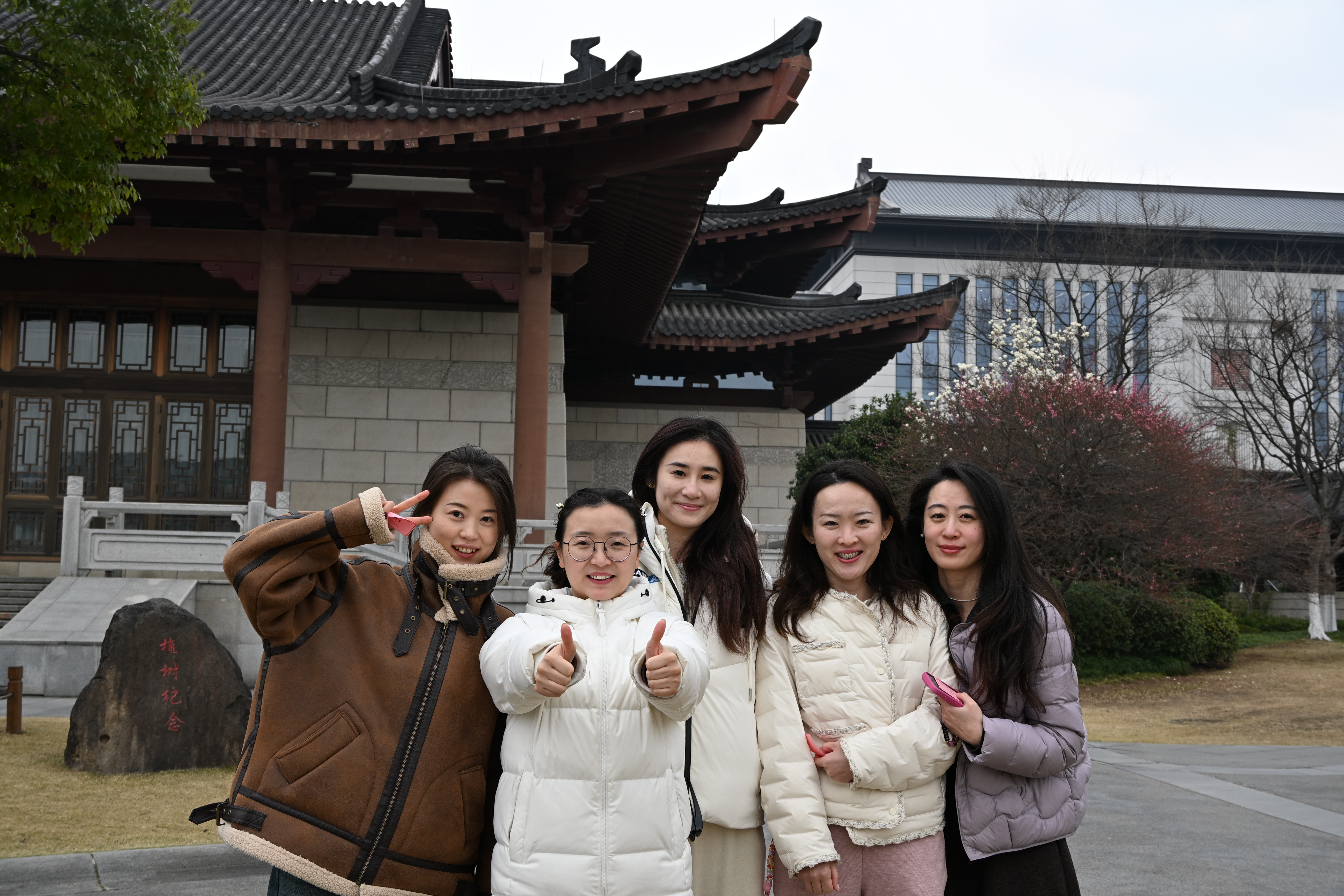 此次活动的路线特别选定为从风景秀丽的文科组团出发,一路行至庄重典雅的求是大讲堂,沿途梅花、玉兰花竞相绽放,为阴天增添了几分生机与活力,也让女教职工们在自然美景与人文景观的交融中享受运动的乐趣。