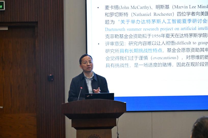 吴飞教授回顾了人工智能的溯源与发端,向大家介绍了人工智能的交叉特性。从1956年达特茅斯会议后人工智能的源生成长,到如今新一代人工智能创新迭出,人工智能的发展历程可以用“两落三起”来概括。在新一代人工智能迅速崛起的当下,基础科学研究和人才培养均重视学科交叉。吴飞教授结合诺贝尔物理、化学奖颁给人工智能的实例,用详实的细节和生动的描述指出人工智能一直活跃在交叉的各学科领域,将人工智能的发展与科学技术的进步紧密联系在了一起。
