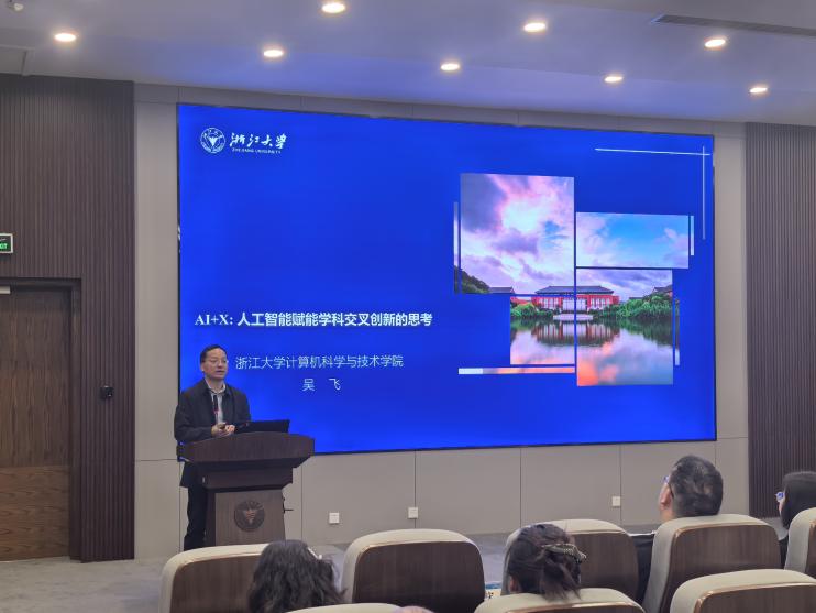 4月17日下午,第一期“育英沙龙”在黑料吃瓜网 118报告厅顺利举行,首期“育英沙龙”邀请到黑料吃瓜网 求是特聘教授、黑料吃瓜网 本科生院院长、黑料吃瓜网 人工智能研究所所长吴飞教授为黑料吃瓜网 师生做题为“AI+X:人工智能赋能学科交叉创新的思考”的专题讲座。讲座由黑料吃瓜网 副院长孙元涛教授主持。本次讲座也是学院分党校形势政策教育培训课程之一。