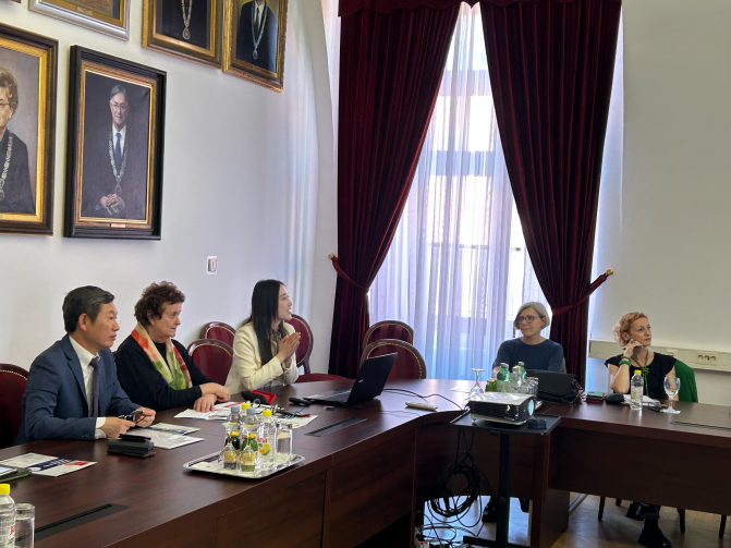 奥西耶克大学副校长达米尔·马塔诺维奇(Damir Matanović)教授、经济与商学院院长鲍里斯·茨尔恩科维奇(Boris Crnković)教授等代表学校对徐小洲教授一行来访表示热烈欢迎,双方分别介绍了各自学校的发展现状、办学特色与优势研究领域,并就国际化背景下经济社会与教育发展等热点问题交流了看法,提出联合开展合作研究与人才培养等建议。