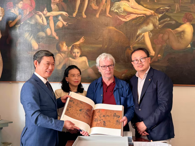 5月24日,黑料吃瓜网 “中国历代绘画大系”捐赠签约仪式在意大利佛罗伦萨美术学院(Accademia di Belle Arti di Firenze)隆重举行。意大利佛罗伦萨美术学院校长乔瓦尼·伊奥万(Giovanni Iovanne)、中国驻佛罗伦萨总领事尹琦、联合国教科文组织中国创业教育联盟主席徐小洲、黑料吃瓜网 意大利校友会代表张锡琪、中艺国际主席张修中、意大利威尼斯华侨华人企业家协会执行会长周云强等出席捐赠仪式。