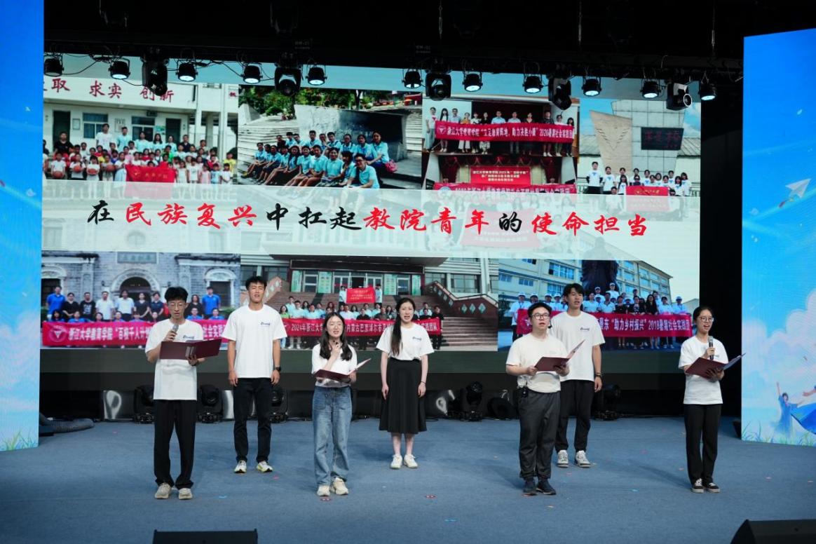 十年坚守,山海可证。研究生支教团的同学用饱含深情的朗诵,带我们走进教院青年在西部大地的十年支教征程。从四川昭觉到贵州台江,从云南景东到广西大化,一代代教院学子用青春丈量了教育共富的里程,用知识浇灌了希望的种子。