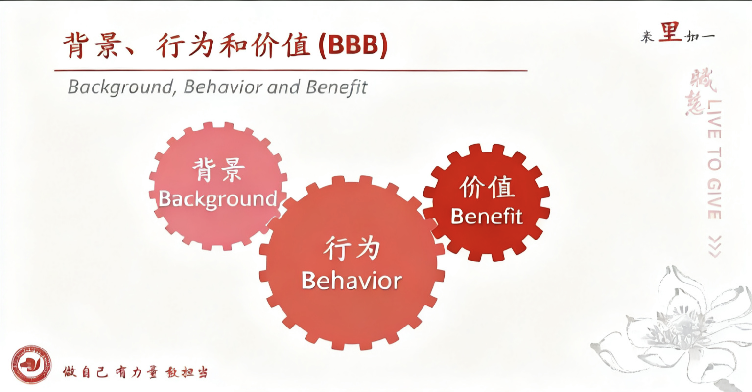 在“里”,即过去经历方面,王老师以电影《当幸福来敲门》中的面试场景导入,讲解了有效回答过去行为类问题的关键:BBB(背景、行为和价值)原则。他强调过往经历不能泛泛而谈,应通过量化(例如“第三名”而非“优秀”)和横向比较等方式为自己的经历添彩,凸显自身经历的独特性。