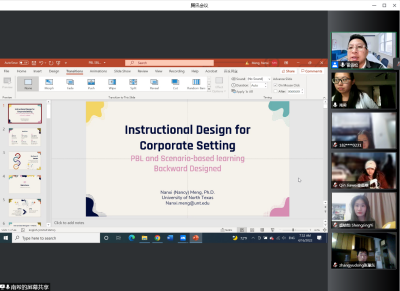 On April 16th, Dr. Nanxi Meng, senior lecturer at University of North Texas, gave a lecture with the theme “Instructional Design for Corporate Setting: PBL and Scenario Based Learning Backward Designed”. Dr. Meng introduced corporate-oriented backward design, which means making the instructional design from learning outcomes, assessment, learning activities to content. Different from the traditional instructional design path, being instructional designers for corporates requires us to act as “learning architect”, “learning analysis”, “experience designer”, “complex concepts articulator”, “performance coach”, “learning and development expert”, “trainer” as well as “strategic development facilitator”. Therefore, Program-based Learning (PBL) and Scenario-based Learning (SBL) were emphasized as two proven and effective methods.